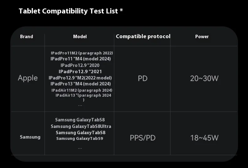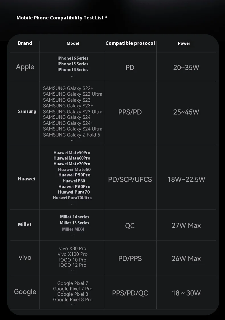 Charging protocol: AFC PD3.0 SCP FCP QC3.0 BC1.2 UFCS