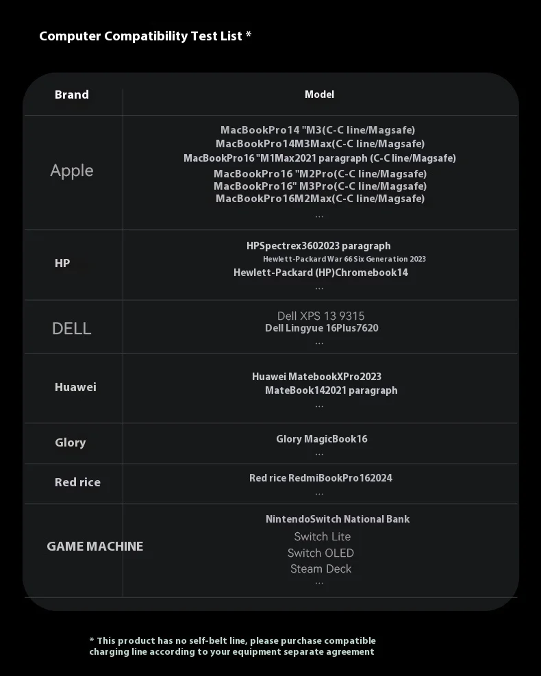 Function: Multi-U port output Bidirectional fast charging Comes with AC plug Multi-voltage Comes with screen display Comes with hanging buckle