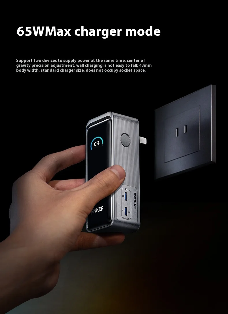 ANKER Prime 2-In-1 Power Bank 65W Portable Charger Fast Charging 9600mAh