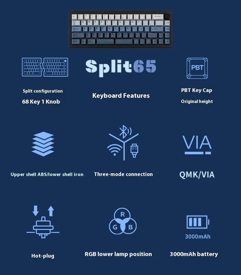 EPOMAKER Split65 Ergonomic Mechanical Keyboard Bluetooth