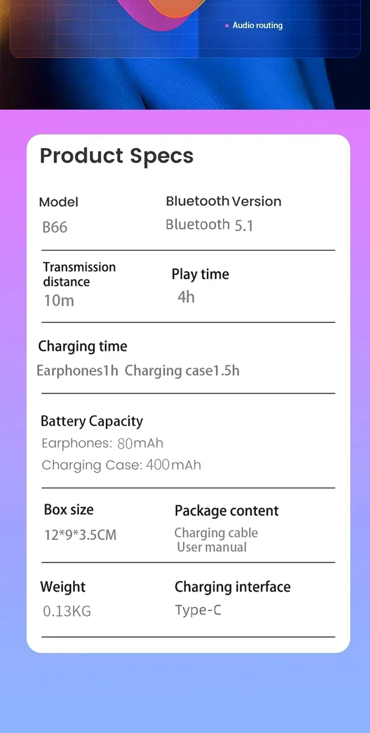 【 Crystal clear HD sound quality 】 Experience the ultimate audio quality with B66 earbuds. With excellent sound quality, these earbuds provide clear audio for speaking and listening, ensuring that every conversation is easy to understand and you don't miss a word. You can count on these earbuds to deliver a superior communication experience unmatched on the market.