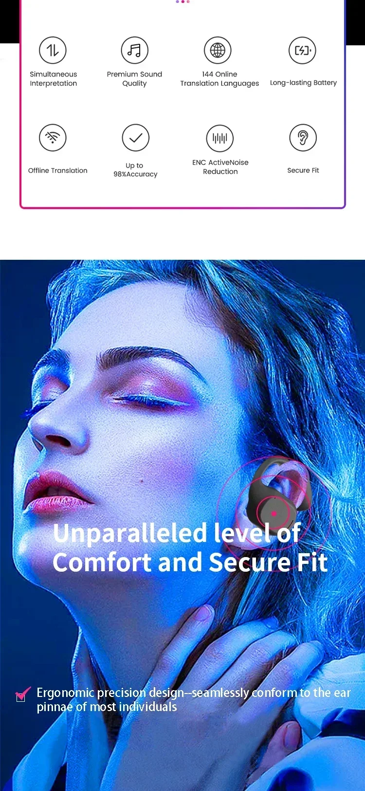 [3-in-1 Earbuds - Translation, Music and Calls] The Anfier earbuds are the ultimate convenience - not only do they offer seamless translation services, but they can also be used as a multifunctional device for phone calls and music listening.